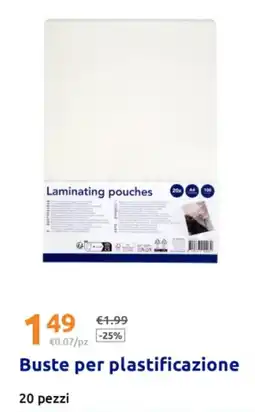 | 2 | Buste per plastificazione | Action | €1,99 | €1,49 | -25% | 14 gennaio 2026 | 20 gennaio 2026 | Guarda l'offerta | |