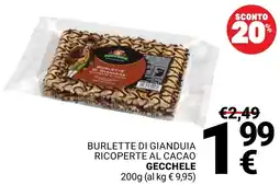| Burlette di gianduia ricoperte al cacao GECCHELE 200 g | Supermercati Gulliver | €2,49 | €1,99 | €0,50 Sconto | 13 febbraio 2026 | 23 febbraio 2026 | |