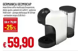 | GERMANICA GECM10CAP macchina caffe | A&O | €79,90 | €59,90 | -25% | 08 gennaio 2026 | 21 gennaio 2026 | |