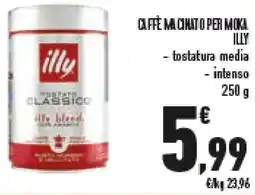 | CAFFÈ MACINATO ILLY tostato moka classico 250 g | Conad Superstore | €7,20 | €5,99 | €1,21 Sconto | 21 febbraio 2024 | 03 marzo 2024 | |