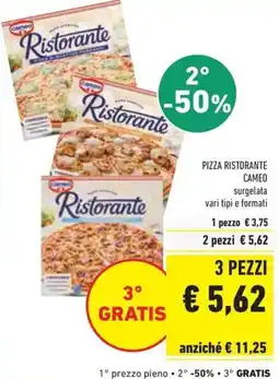 | Pizza ristorante CAMEO 340 g | Conad | €3,55 | €2,49 | €1,06 Sconto | 04 settembre 2024 | 17 settembre 2024 | |