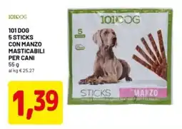 | 101dog 5 sticks con manzo masticabili per cani 55 g | DPiù | €1,39 | 23 febbraio 2026 | 04 marzo 2026 | |||