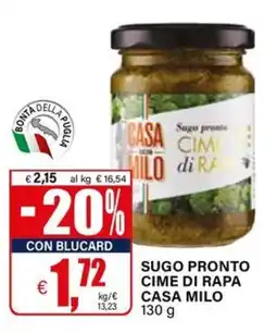 | Sugo pronto cime di rapa CASA MILO 130 g | Il Gigante | €2,15 | €1,72 | -20% | 23 aprile 2026 | 06 maggio 2026 | |