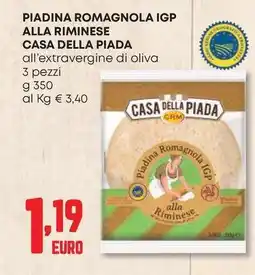 | Piadina romagnola igp alla riminese CASA DELLA PIADA 350 g | Pam | €1,19 | 12 febbraio 2026 | 25 febbraio 2026 | |||