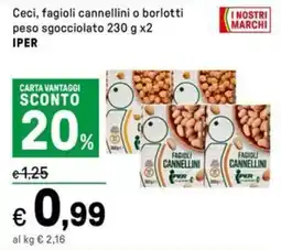 | Ceci, fagioli cannellini o borlotti peso sgocciolato IPER | Iper La Grande | €1,25 | €0,99 | €0,26 Sconto | 12 febbraio 2026 | 22 febbraio 2026 | |