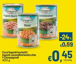 | Ceci/fagioli borlotti/ fagioli cannellini/lenticchie I Campagnoli 400 g | Qui Discount | €0,59 | €0,45 | -24% | 17 febbraio 2026 | 01 marzo 2026 | |