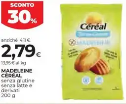 | Cereal Céréal - Madeleine Senza Glutine 200 G(ml) | Coop | €3,28 | €2,29 | €0,99 Sconto | 08 ottobre 2021 | 20 ottobre 2021 | |