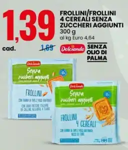 | Frollini/frollini 4 cereali senza zuccheri aggiunti Delciando 300 g | Eurospin | €1,69 | €1,39 | €0,30 Sconto | 05 gennaio 2026 | 11 gennaio 2026 | |