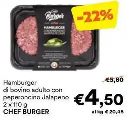 | Hamburger di bovino adulto con peperoncino Jalapeno CHEF BURGER | Unes | €5,80 | €4,50 | -22% | 04 febbraio 2026 | 15 febbraio 2026 | |
