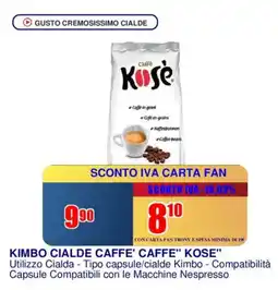 | 2 | Kimbo cialde caffe' caffe" kose" | Trony | €9,90 | €8,10 | €1,80 Sconto | 02 aprile 2026 | 15 aprile 2026 | Guarda l'offerta | |