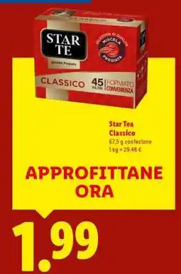 | Star Tea Tè Classico 67.5 g | Lidl | €1,89 | 12 gennaio 2025 | 19 gennaio 2025 | |||