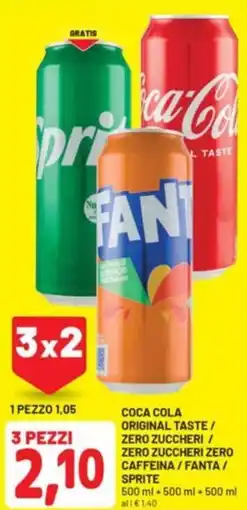 | COCA-COLA ORIGINAL TASTE 2 x 1,75 L + 2 x 1.75 L + 2 x 1,75 L 3 x 2 3 pezzi | DPiù | €9,18 | 21 agosto 2023 | 03 settembre 2023 | |||