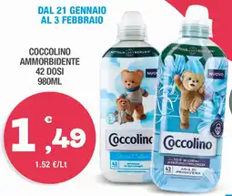 | Coccolino ammorbidente 42 dosi 980 ml | Splendidi e Splendenti | €1,49 | 21 gennaio 2026 | 03 febbraio 2026 | |||