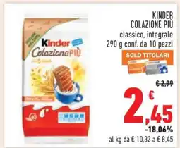 | Kinder Colazione Più 290 g | Qui Discount | €2,88 | €2,39 | -17% | 17 marzo 2026 | 05 aprile 2026 | |