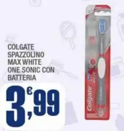 | Colgate spazzolino max white one sonic con batteria | Splendidi e Splendenti | €3,99 | 08 aprile 2026 | 21 aprile 2026 | |||