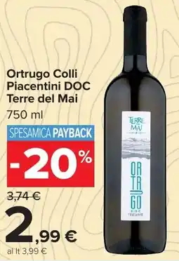 | 2 | Ortrugo Colli Piacentini DOC Terre del Mai 750 ml | Carrefour Market | €3,74 | €2,99 | -20% | 16 dicembre 2025 | 01 gennaio 2026 | Guarda l'offerta | |