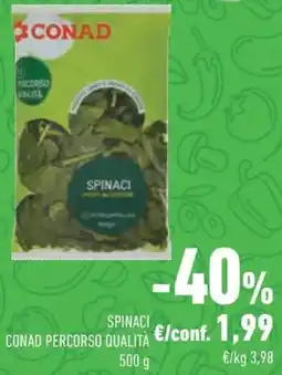 | 1 | Spinaci conad percorso qualita 500 g | Conad | €3,32 | €1,99 | -40% | 24 febbraio 2026 | 10 marzo 2026 | Guarda l'offerta | |