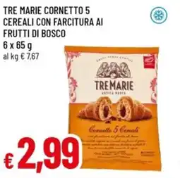 | Tre Marie Cornetto 5 Cereali con Farcitura ai Frutti di Bosco 6x65g | Famila | €2,49 | 29 ottobre 2021 | 07 novembre 2021 | |||