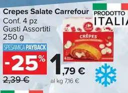 | 2 | Crepes Salate Carrefour 250 g | Carrefour Market | €2,39 | €1,79 | -25% | 05 maggio 2026 | 18 maggio 2026 | Guarda l'offerta | |