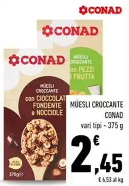 | MUESLI CROCCANTE CONAD vari tipi 375g | Conad | €2,35 | 19 luglio 2023 | 30 luglio 2023 | |||