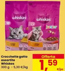 | 2 | Crocchette gatto Whiskas 300 g | Despar | €1,59 | 22 gennaio 2026 | 04 febbraio 2026 | Guarda l'offerta | |||