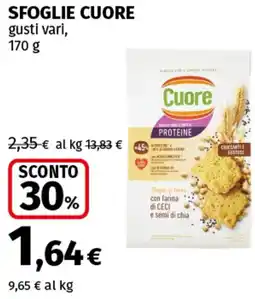 | 2 | Sfoglie CUORE 170 g | Coop Superstore | €2,35 | €1,64 | €0,71 Sconto | 19 febbraio 2026 | 04 marzo 2026 | Guarda l'offerta | |