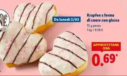 | Krapfen a forma di cuore con glassa | Lidl | €0,69 | 02 febbraio 2026 | 08 febbraio 2026 | |||