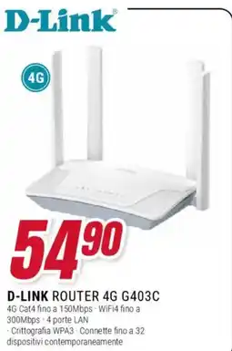 | D-Link MODEM ROUTER 4G G403 | Euronics | €59,99 | 09 ottobre 2025 | 26 ottobre 2025 | |||