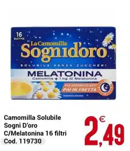 | Camomilla Solubile Sogni D'oro C/Melatonina 16 filtri | Centro Cash | €2,49 | 19 gennaio 2026 | 01 febbraio 2026 |