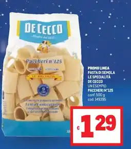 | Pasta di semola le specialità de cecco paccheri n°125 500 g | Metro | €1,29 | 04 dicembre 2025 | 31 dicembre 2025 | |||