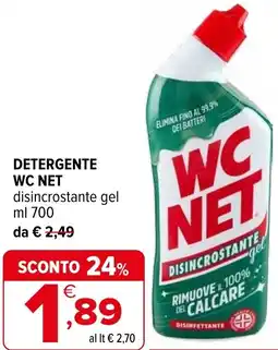 | DETERGENTE DISINCROSTANTE WC NET | Coop | €2,70 | €1,89 | €0,81 Sconto | 08 gennaio 2026 | 21 gennaio 2026 | |