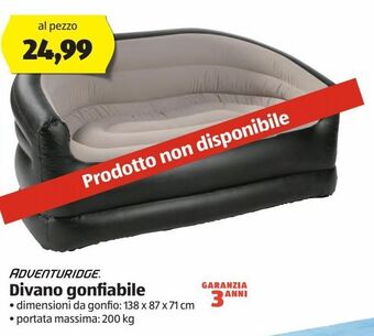 ![]() | Adventuridge - divano gonfiabile | ALDI | €29,99 | 08 maggio 2023 | 14 maggio 2023 | ||