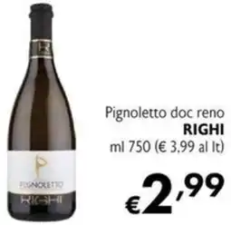 | Pignoletto doc reno RIGHI 750 ml | Maxi Supermercati | €2,99 | 23 aprile 2026 | 06 maggio 2026 | |||