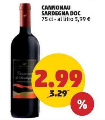 | CANNONAU SARDEGNA DOC 75 cl | PENNY | €3,29 | €2,99 | €0,30 Sconto | 25 maggio 2023 | 04 giugno 2023 | |