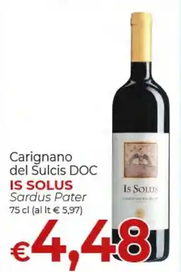 | Carignano del Sulcis DOC IS SOLUS Sardus Pater 75 cl | Supermercati Nonna Isa | €4,48 | 06 febbraio 2026 | 18 febbraio 2026 | |||
