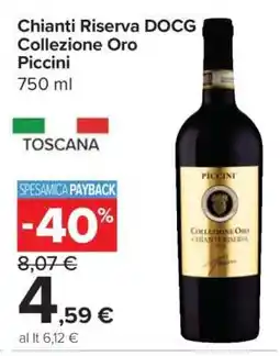 | Chianti Governo DOCG o Chianti Riserva DOCG Collezione Oro Piccini 750 ml | Carrefour | €7,79 | €3,89 | €3,90 Sconto | 12 maggio 2023 | 29 maggio 2023 | |