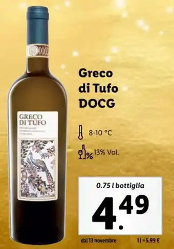 | Greco di tufo - docg | Lidl | €4,49 | 02 novembre 2023 | 24 dicembre 2023 | |||