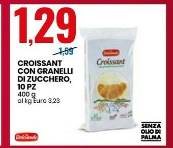 | Dolciando croissant con crema bigusto, 10 pz 500 g | Eurospin | €2,59 | €2,00 | €0,59 Sconto | 17 luglio 2025 | 27 luglio 2025 | |