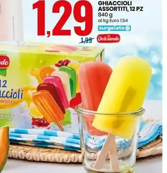 | Ghiaccioli assortiti, 20 pz Dolciando 1,5 kg | Eurospin | €3,99 | €3,19 | €0,80 Sconto | 11 agosto 2025 | 24 agosto 2025 | |
