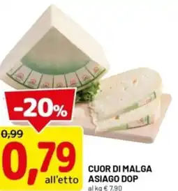 | Cuor di malga asiago DOP | DPiù | €0,99 | €0,79 | -20% | 30 aprile 2026 | 10 maggio 2026 | |
