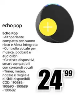 | alexa Echo Pop | MediaWorld | €24,99 | 20 novembre 2025 | 01 dicembre 2025 | |||