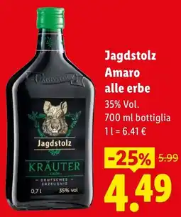 | 2 | Jagdstolz Amaro alle erbe 700 ml | Lidl | €5,99 | €4,49 | -25% | 16 marzo 2026 | 22 marzo 2026 | Guarda l'offerta | |