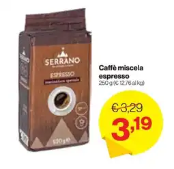 | 7 | SERRANO Caffè miscela espresso 250 g | In'S Mercato | €3,29 | €3,19 | €0,10 Sconto | 31 dicembre 2025 | 11 gennaio 2026 | Guarda l'offerta | |