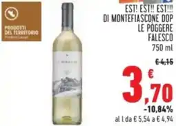 | Est! est!! est!!! di montefiascone dop le poggere FALESCO 75 cl | Coop | €4,69 | €2,99 | -35% | 25 settembre 2025 | 08 ottobre 2025 | |