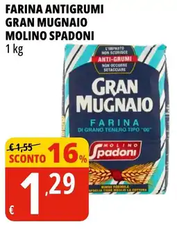 | Farina antigrumi gran mugnaio MOLINO SPADONI 1 kg | Tigros | €1,55 | €1,29 | €0,26 Sconto | 10 marzo 2026 | 23 marzo 2026 | |