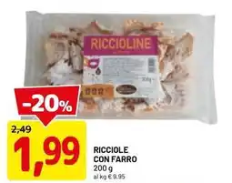 | 2 | Ricciole con farro 200 g | DPiù | €2,49 | €1,99 | -20% | 09 febbraio 2026 | 22 febbraio 2026 | Guarda l'offerta | |