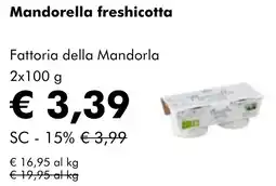| 1 | Mandorella freshicotta Fattoria della Mandorla | NaturaSì | €3,99 | €3,39 | SC - 15% | 07 gennaio 2026 | 03 febbraio 2026 | Guarda l'offerta | |
