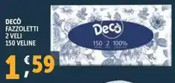 | Deco fazzoletti 4 veli 10 pacchetti | Deco Supermercati | €0,99 | 29 ottobre 2024 | 07 novembre 2024 | |||