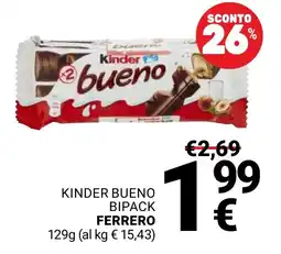 | Kinder bueno bipack FERRERO 129 g | Supermercati Gulliver | €2,69 | €1,99 | €0,70 Sconto | 13 febbraio 2026 | 23 febbraio 2026 | |