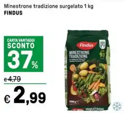 | Minestrone tradizione surgelato FINDUS 1 kg | Iper La Grande | €4,79 | €2,99 | €1,80 Sconto | 20 febbraio 2026 | 05 marzo 2026 | |